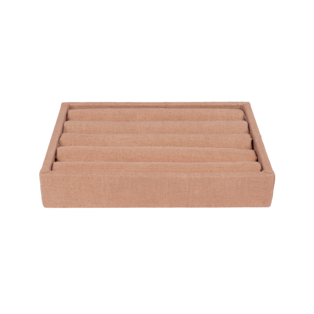 With the ring display you can show your most precious rings. The warm color and soft fabric gives a sense of allure.